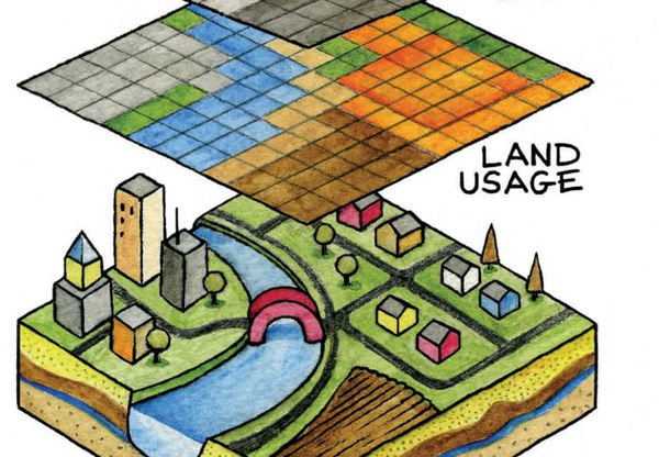 Land records and survey data are captured for property, land, water and holding tax, etc. The spatial features are extracted from Ariel imagery using photogrammetry methods.